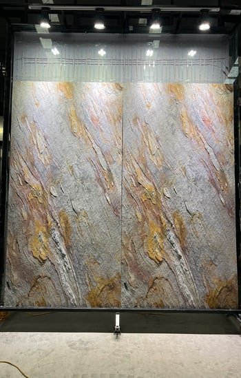 RUDA AUDRA – tai permatomas natūralus, plonas, lankstus akmuo, pagamintas iš cherto, žavintis savo gyliu ir natūralia tekstūra. Įspūdinga jo istorija atskleidžia daugybę panaudojimo galimybių interjeruose, kur būtinas šviesos ir šešėlio žaismas.